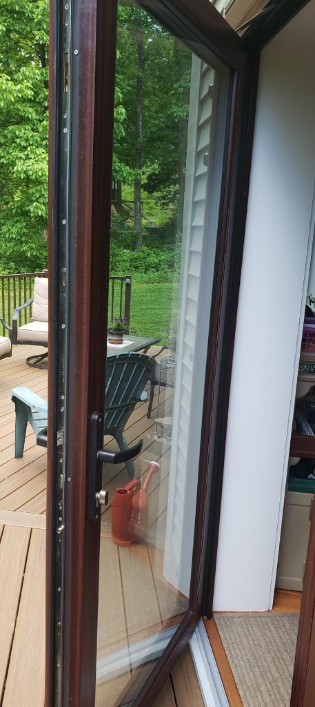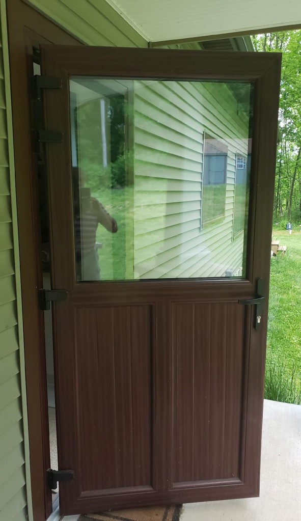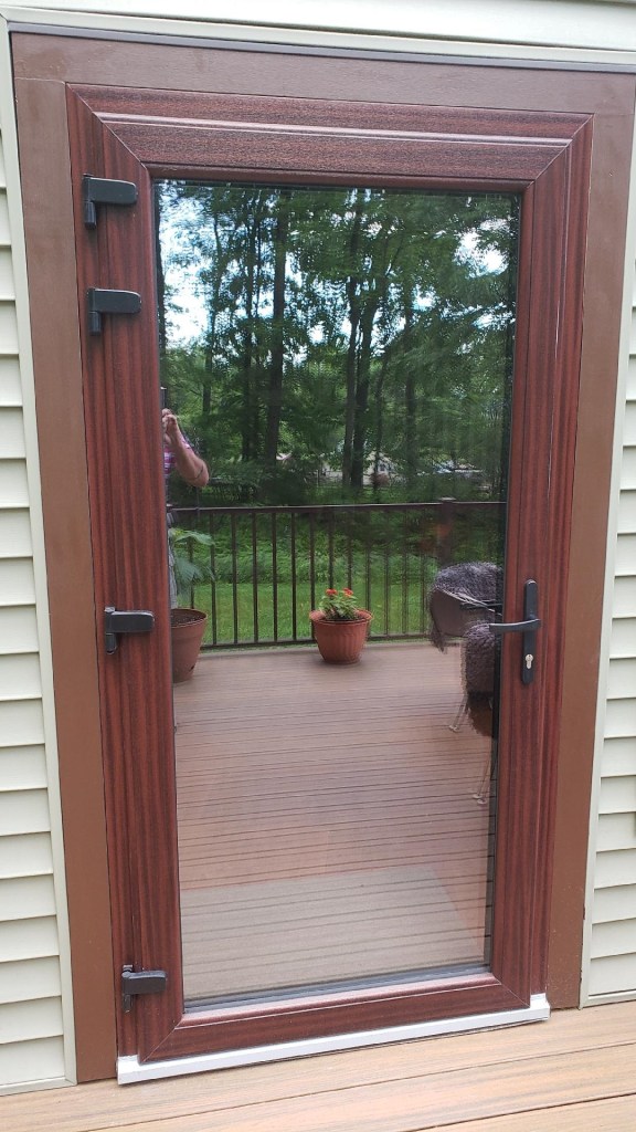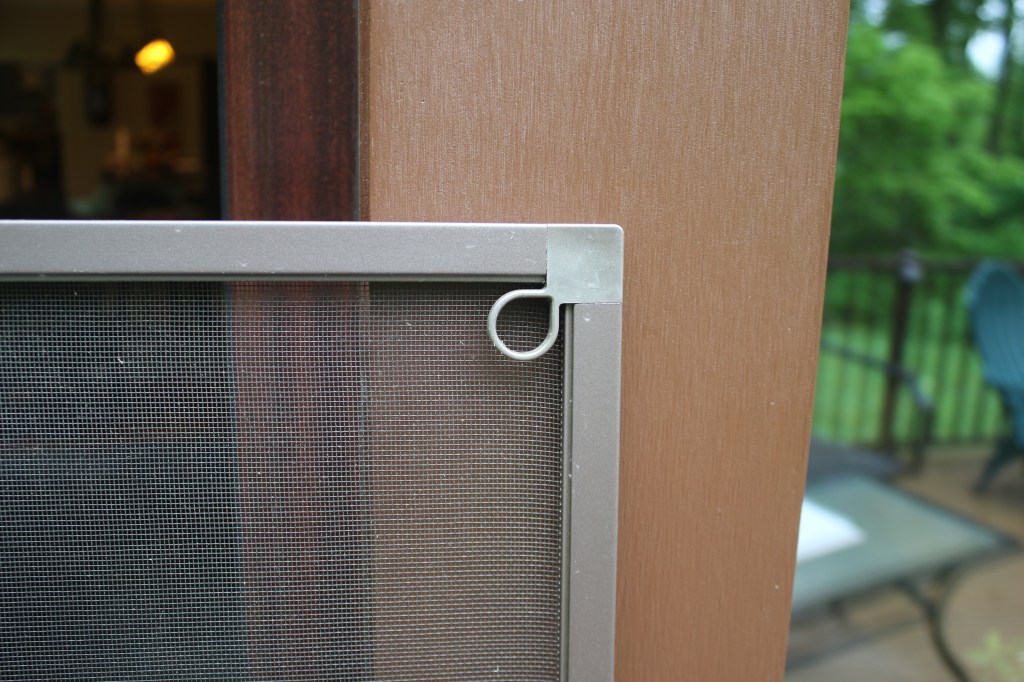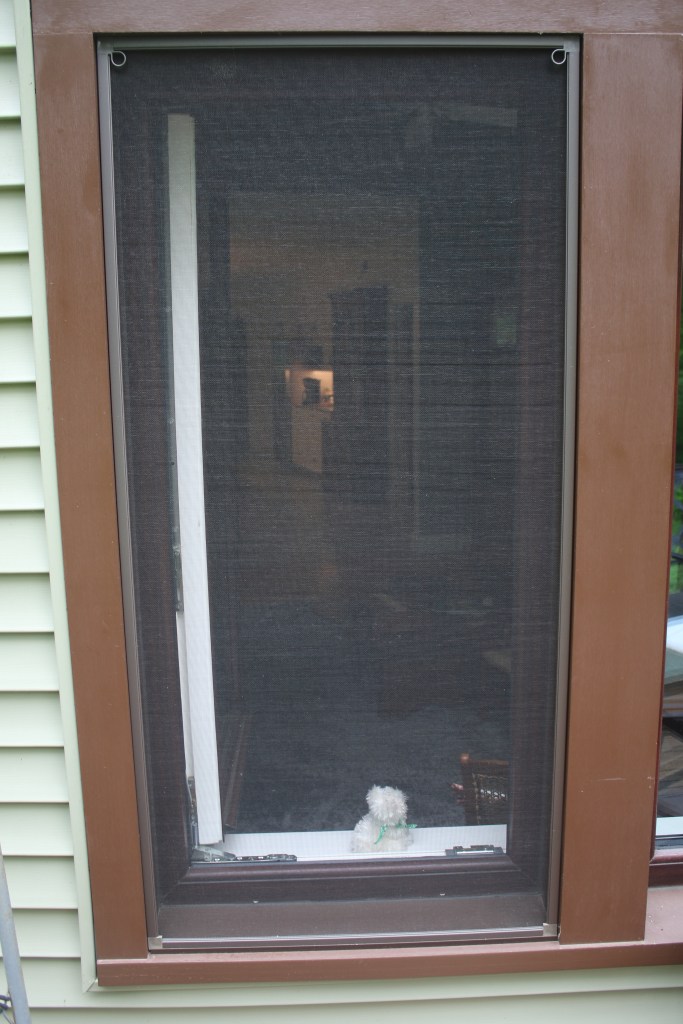 Screens had my puzzle for a while.   I had some local window contractors come give me prices.  They were outrageous, something like $250 a window. They were over engineering a solution.   I’m a DIY guy with high tech and building skills.  One of the contractors suggest I go on line and I could get the screens at half the price.  I tried a couple of Screen sites the screen prices were ok but the shipping cost was crazy.   Looking at the windows I notices a “Framing Lip” all the way around the windows.  I went to Lowes and bought some 1/2″ U channel, and painted it brown to match my trim.  I installed it on the bottom sill.  I measured inside the Lip and went to the local “old time” hardware store and had them make a test screen.  WALA it fit.  I had springs put on the bottom and finger hooks on the top.  The bottom with the springs fits into the track and pushes the screen tight to the top.  With the one working model I went to a local window and screen store (one i used when I owned apartment buildings, tenants are very hard on screens) and had them make all the screens. It think the price ran per $30 to $35 per screen. Out of all the screens only one isn’t as tight as it could be, but it’s up stairs bedroom and we only use the it a few times a year.  That screen should be about 1/4″ taller.