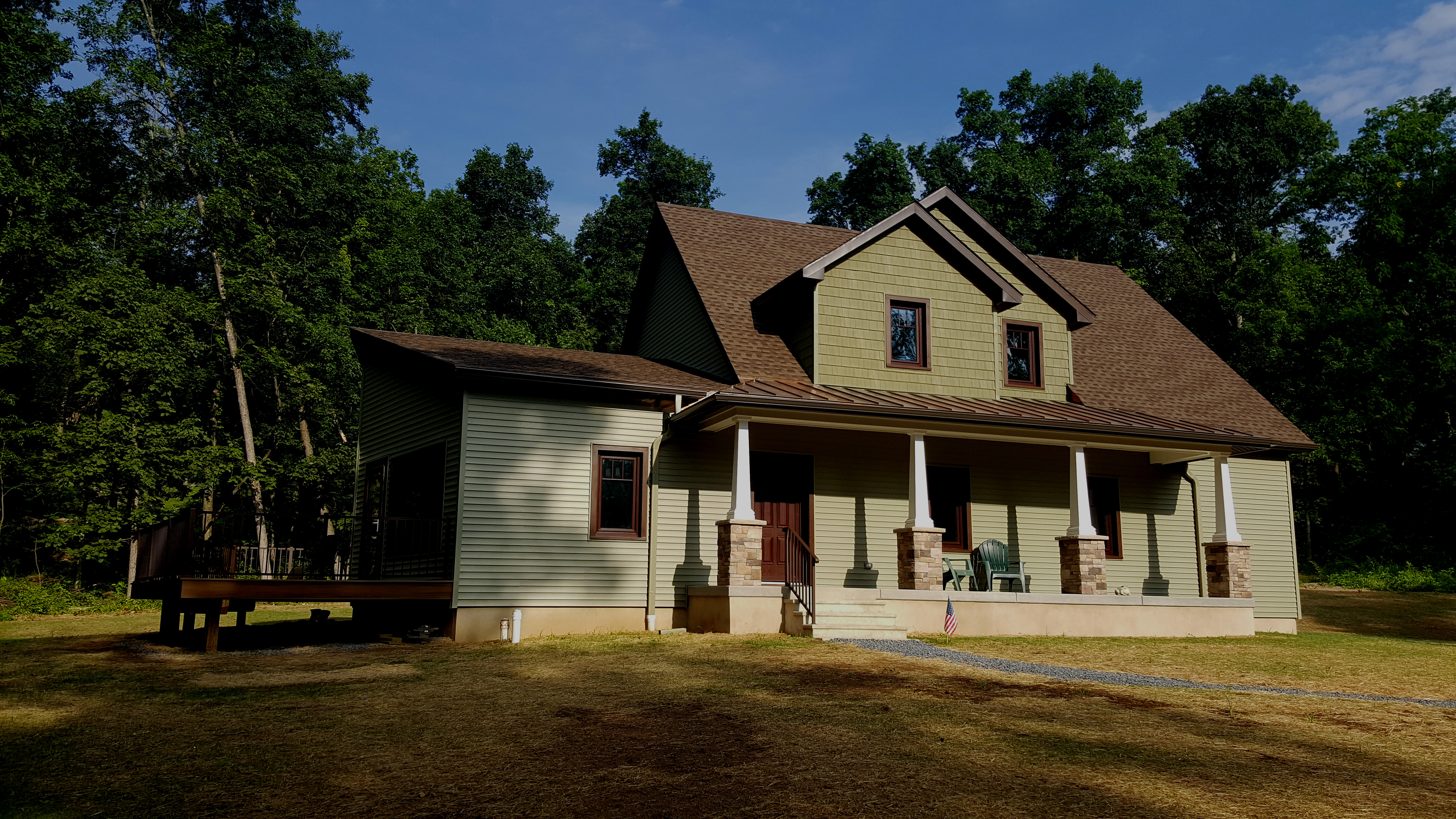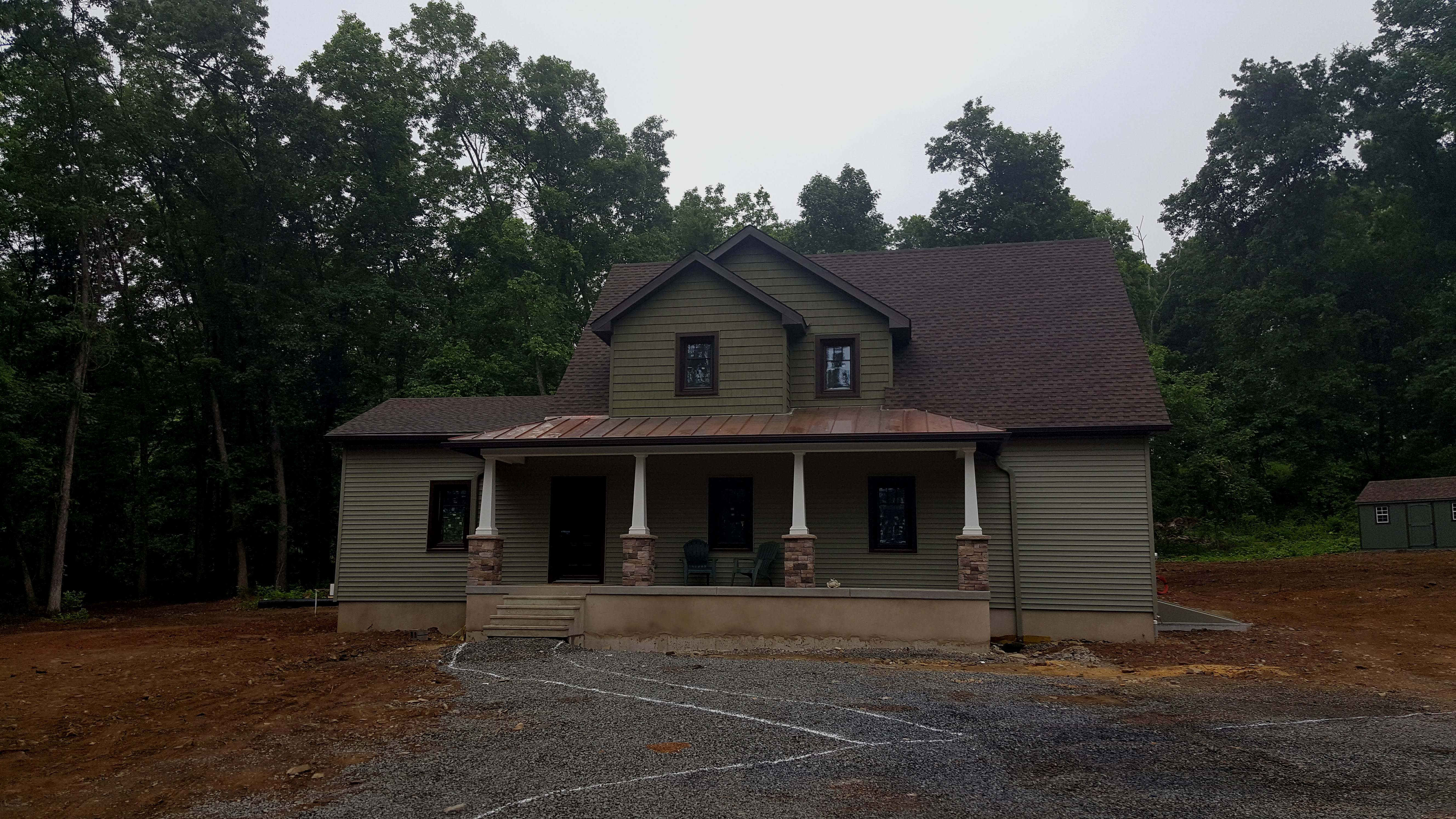 The outside is near done, less landscaping. The sidewalks will hold off to go through a freeze and thaw cycle over winter. Grass is in and coming up.  All the mechanicals installed and running.  It’s purely amazing how easy the mini-splits cool the house.  The other day the Great Room mini-split had a problem, so I just left it on fan, and put the master bedroom unit on 72 degrees at 9:00 in the morning, and turned the ERV on.  It got to around 94 that day. At noon I shot some temps: the MBR was 72, as expected, The rest of the house was around 74. By 4:00 PM the hole first floor was 72. That’s only one 9,000 BTU unit run, that’s 0.75 tons of A/C for you old schoolers. The first floor is 1640 sqft.